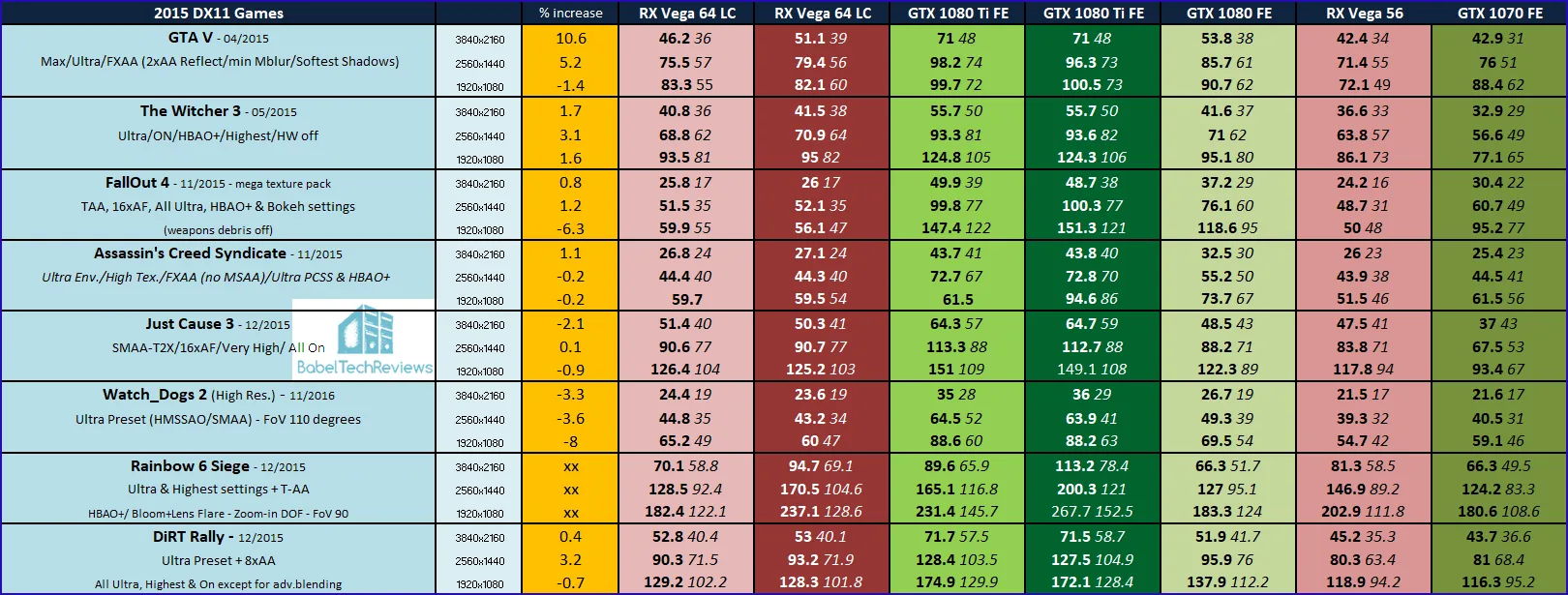 There are two methods of calculating percentages. In a recent evaluation we used “Performance Differences” to compare the GTX 1080 and the GTX 1080 Ti versus the RX Vega 64 LC. This time we are now using “Percentage Changes” which are usually used to show improvements in average frame rates (FPS) between the Launch drivers and the latest 17.9.3 driver results.