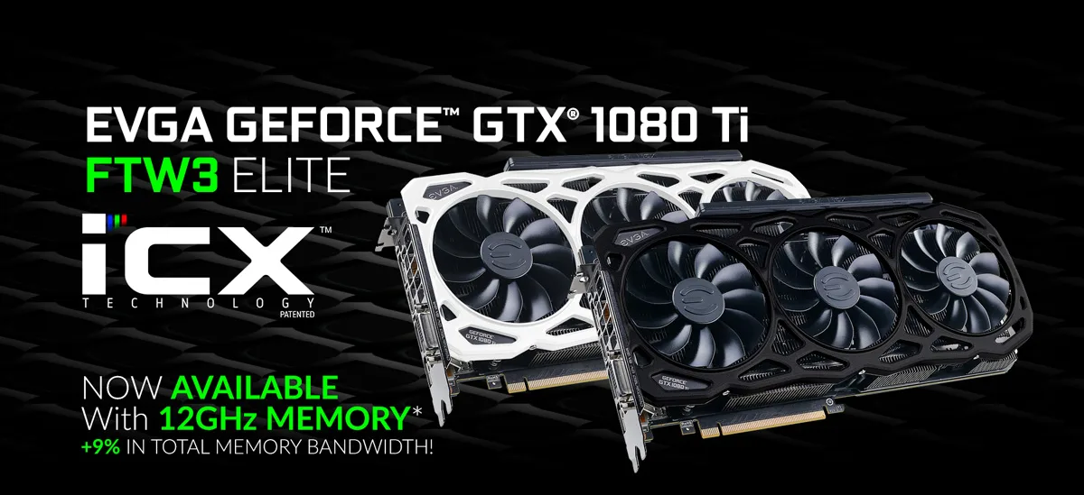 The EVGA GeForce GTX 1080Ti FTW3 ELITE cards are now available with 12GHz of GDDR5 memory, giving it 528 GB/s of memory bandwidth! This is a 9% increase in total memory bandwidth. These cards are available with either the ELITE Black or White shroud, and of course comes with EVGA’s exclusive iCX technology, giving you 9 thermal sensors, onboard thermal LED indicators and incredible cooling with quiet operation.