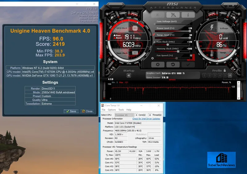 - MSI Afterburner used for overclocking the GTX 1080 Ti and for setting all NVIDIA cards’ power limit/temps to maximum