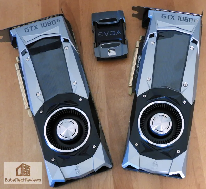 We were able to borrow a second GTX 1080 Ti and we ran the same benchmarks as in the GTX 1080 Ti launch evaluation last Thursday. We removed the backplate from the bottom GTX 1080 Ti so that the top card could intake air more easily and we used our EVGA HB SLI bridge.
