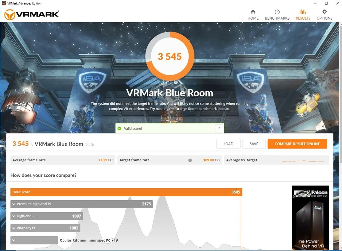 We also ran Futuremark’s VRMark Blue Room which is designed to test future VR games. It appears that SLI does not scale particularly well with VR yet at only 23%, and even overclocked +120MHz on the cores and +400MHz on the memory, our pair of GTX 1080 Tis are insufficient for running the Blue Room test adequately even though BTR’s PC is in the top 3% of PCs tested!