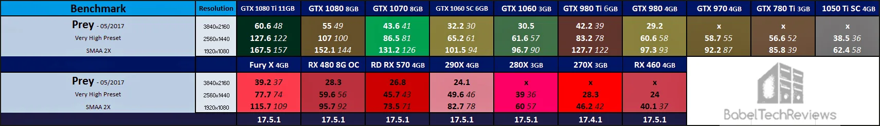 You will never run out of things to do if you are a completionist. Prey offers dozens of ways to approach an objective, and it would be easy to sink well over 30 hours into the game on the first playthrough. We will definitely give a recommendation to this gem of a game, and now we want to see how it performs on 17 video cards with the latest drivers: