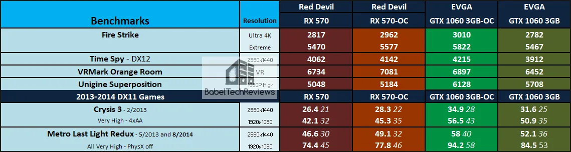 This overclocking showdown is a follow-up to the PowerColor Red Devil RX 570 4GB versus the EVGA GTX 1060 3GB evaluation last week. Today, we have optimized our overclocks with all performance options set to their highest limits to get the most performance from each card.