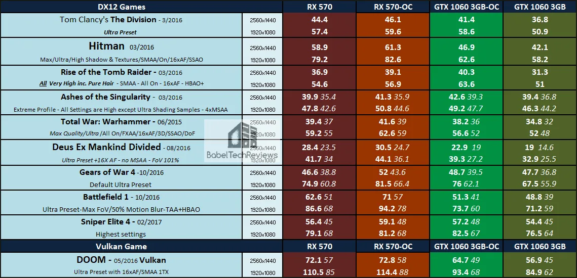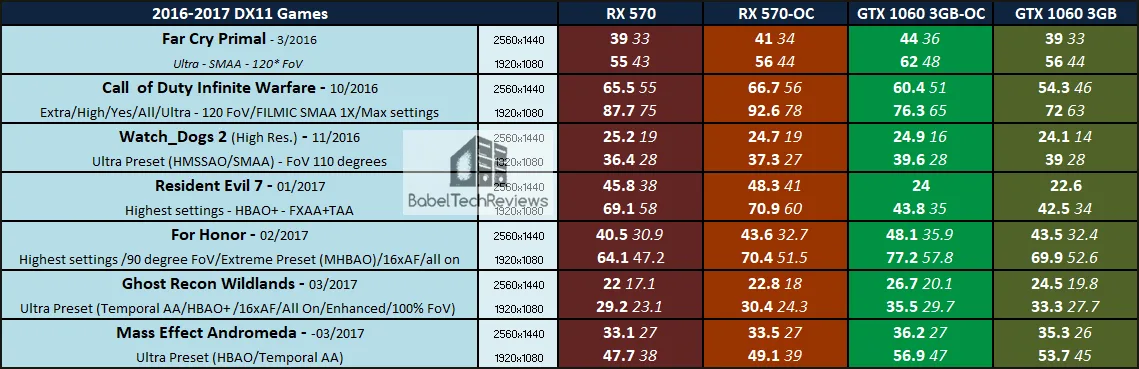 Let’s head to the performance charts to see how the overclocked-to-the-max EVGA GTX 1060 3GB Gaming edition compares with the overclocked-to-the-max PowerColor Red Devil RX 570.