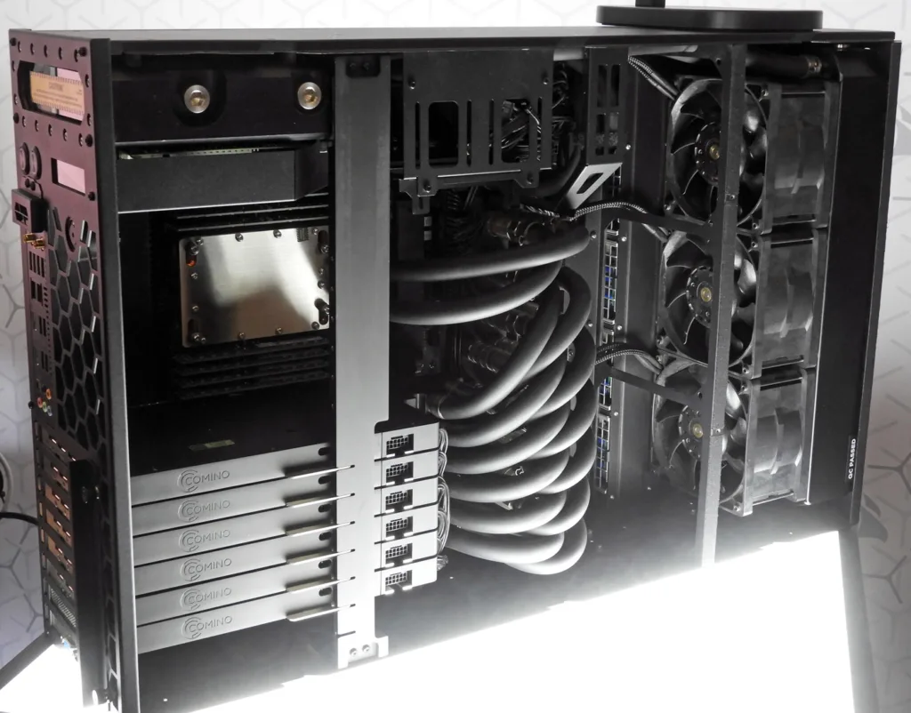 This amazing liquid cooled workstation which is not yet ready for sale, features multiple NVIDIA Grace Superchips and up to six Pro 6000 Blackwell GPUs. If you’d rather not wait, you can currently configure an X-Class GRANDO from ORIGIN PC with a Threadripper Pro, 1TB of ECC DRAM, 32TB of NVME M.2 Storage, and six A-1000s, all powered by up to four 1600W PSUs.