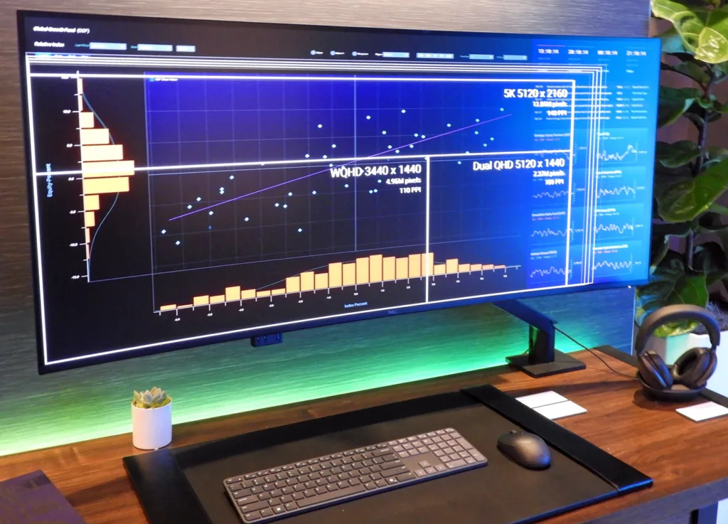 The Dell UltraSharp 52 Thunderbolt Hub Monitor is the world’s first 52-inch 6K monitor. Designed to be easy on the eyes, it achieves tier 6 of TÜV Rheinland Low Blue Light certification. Although it can be used for gaming, it’s primarily designed for financial traders, data scientists, engineers, and executives who require a super-wide screen without resorting to a multi-monitor setup.