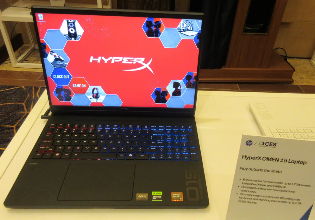 The HyperX OMEN 15 notebook was also introduced for gamers with more modest needs. It offers similar features to its flagship big brother but manages to stay within a 170W power envelope, and features a 120Hz 3K OLED or a higher refresh rate IPS screen. Like the HyperX OMEN 16 (non-Max), a choice of RTX 5070 or RTX 5060 is offered but with an additional less expensive option to use a RTX 5050.
