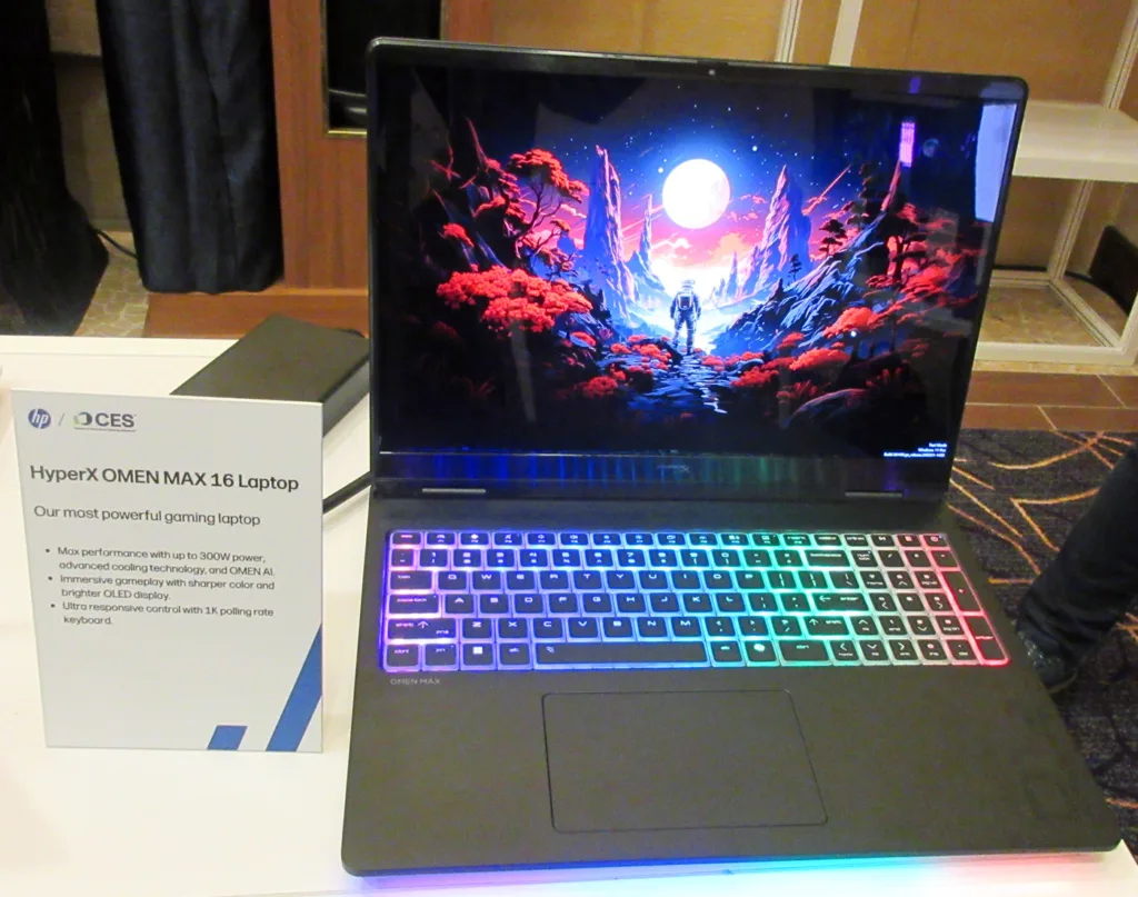 The HyperX OMEN MAX 16 notebook now boasts 300W total power which is 50W more than last year’s flagship model. It boasts a 2.5K OLED 240Hz WQXGA 500-nit OLED display, ultra-responsive 1000Hz polling rate keyboard, and is powered by Intel’s Core Ultra 200HX series or the latest AMD Ryzen AI processors coupled with a RTX 5090. It may be configured with up to 64GB DDR5 6400.
