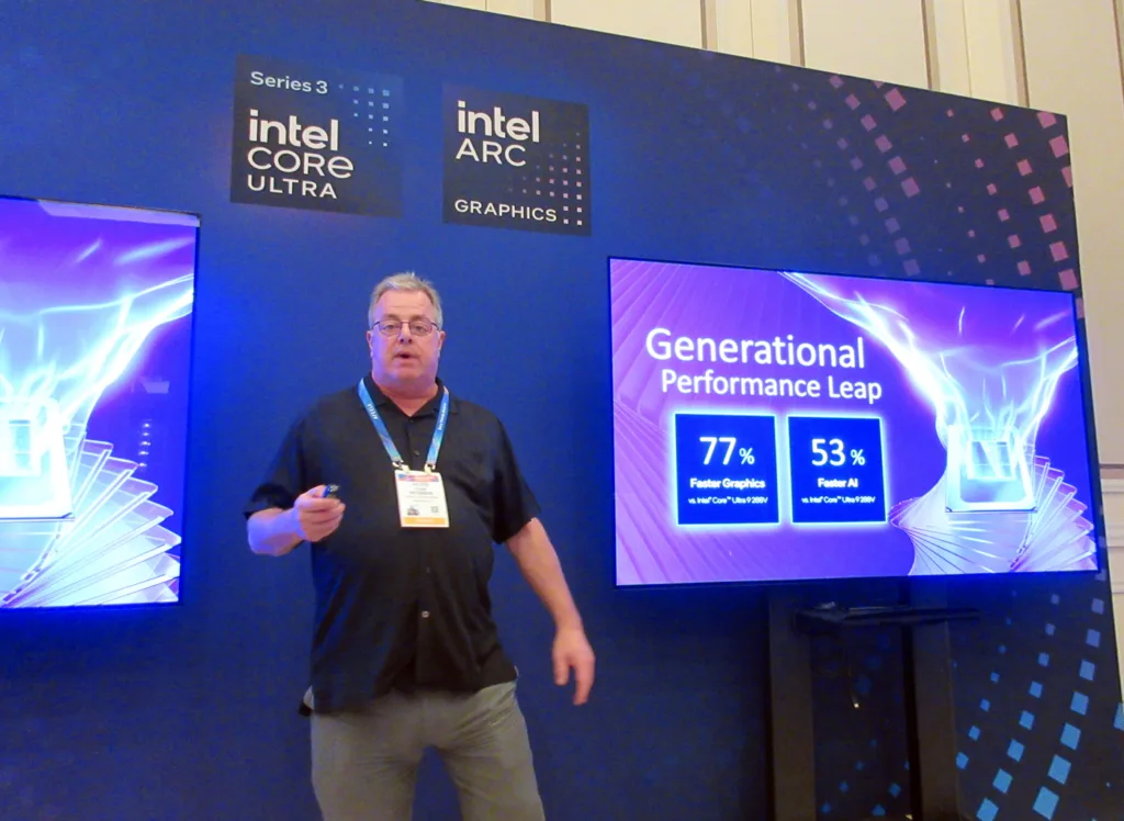 Tom Petersen (TAP) is an almost legendary figure in the PC hardware world where he spent decades at NVIDIA before becoming a spokesperson for Intel and especially for Arc Graphics. His presentation claimed that Intel has made a 77% generational performance leap of Panther Lake’s 12 Xe-core variant of the Arc B390 iGPU over the Lunar Lake Arc 140V graphics using less power.