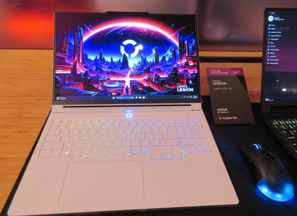 The Lenovo Legion 7a is a very lightweight (4.07 lbs) 16-inch gaming laptop with an OLED display offering up to a 12-core Ryzen AI 9 HX 470 CPU, an RTX 5060 mobile GPU with a 125 W TDP, 64 GB of DDR5 memory, and 2 TB of storage. The premium G-Sync 16-inch OLED display is 240Hz with 500 nits of brightness.