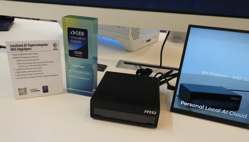 MSI’s EdgeXpert is basically a DGX Spark dev kit. However, their innovative advanced vapor chamber thermal solution, which eliminates the throttling found in the reference version, won them a CES 2026 Innovation Award