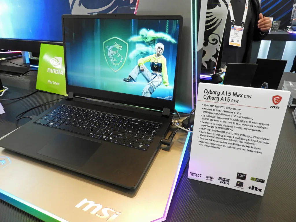Moving down the notebook lineup, we reached the Cyborg A15 and A15 Max. It is still quite powerful using a mobile RTX 5070, but the display is a 1080P IPS panel at 144Hz, and it uses two cooling fans.