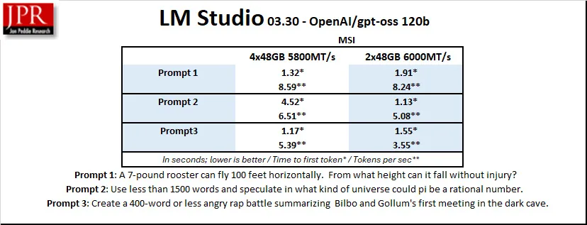 If you want to use LLMs like the OpenAI 120 billion model and you don’t have a professional GPU with a lot of vRAM or perhaps two RTX 5090s, a slower 4x48GB RAM configuration produces more accurate and detailed responses more quickly than a very fast 2x48GB kit. And for most workstation tasks and even gaming, 4400MT/s may be acceptable.
