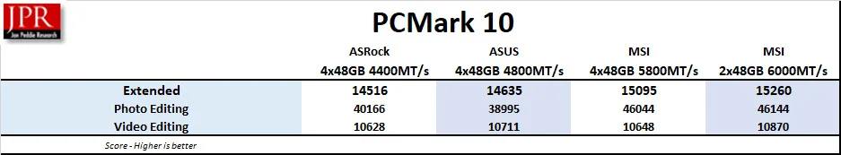 Just as with PCMark 10, faster memory generally brought increased scores.