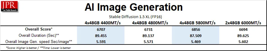 Because AI Image Generations runs on the GPU, there isn’t a lot of difference among the results.