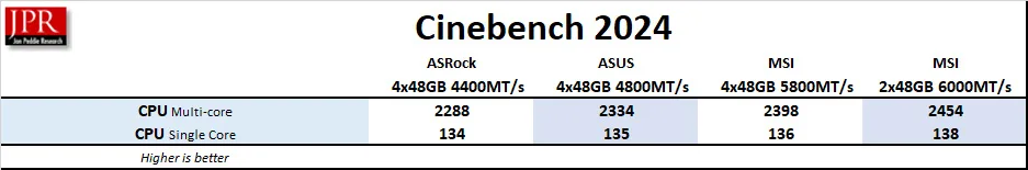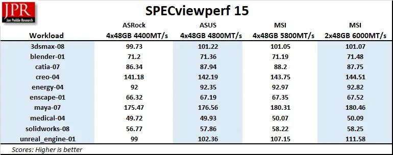 Generally, performance scales upward as the RAM speed increases. However, for workstation tasks, the DDR5 at 4400MT/s is satisfactory.