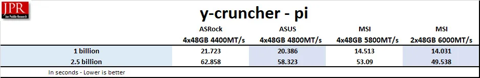 Memory speed matters in Y-cruncher, with performance scaling upward as the frequency increases.