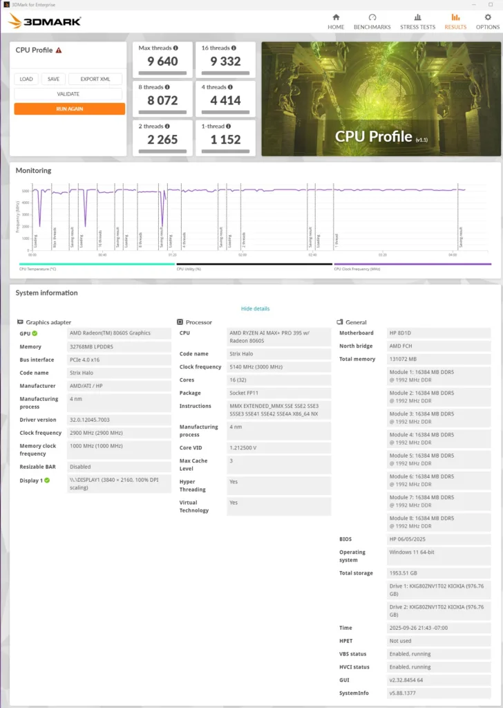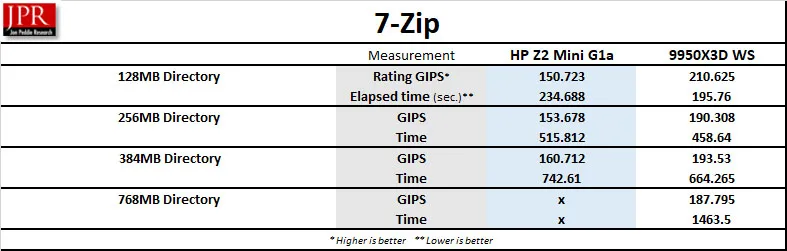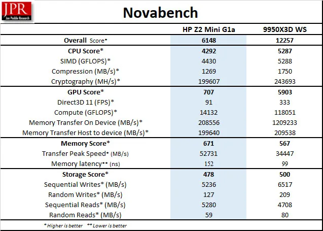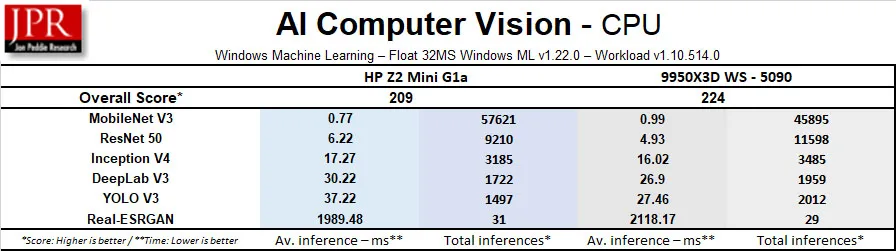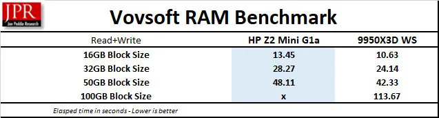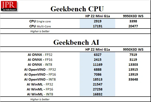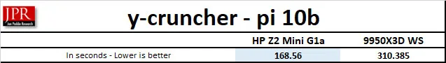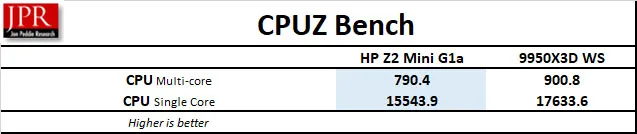 As expected, the Ryzen 9 9950X3D outperformed the Z2 Mini G1a’s Ryzen AI Max+ PRO 395 in synthetic workloads, despite both featuring 16 cores and 32 threads.