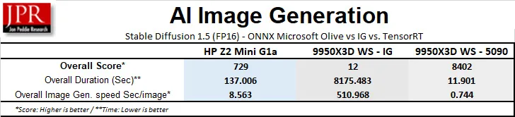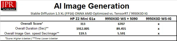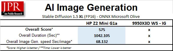 Technically, the 9950X3D’s integrated graphics can complete the Stable Diffusion XL workload—but full inference would take over 24 hours, underscoring the importance of dedicated AI acceleration.