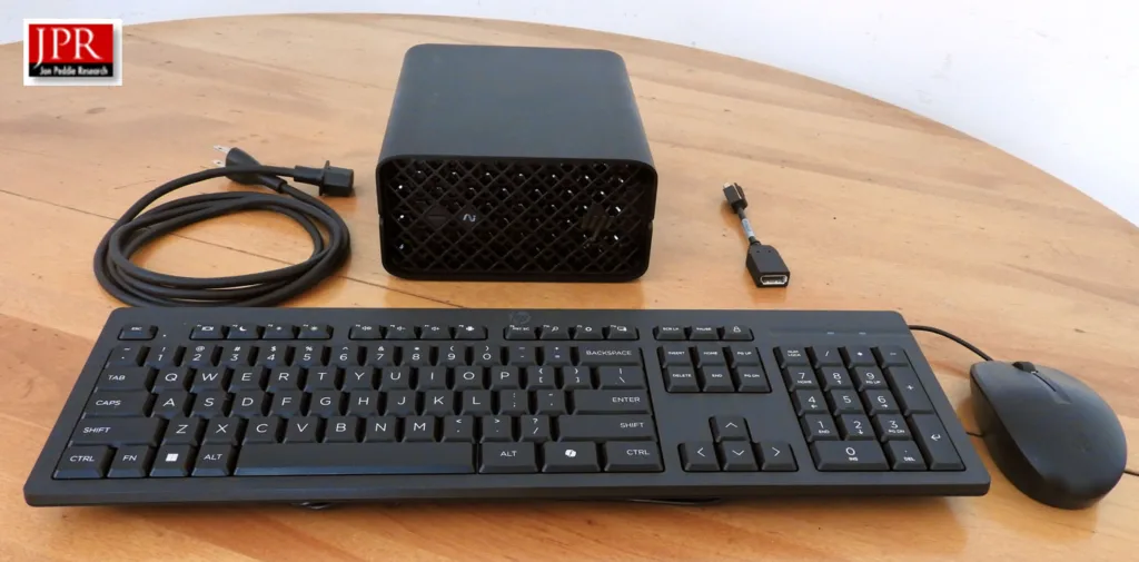 HP includes a three-year warranty with the Z2 Mini G1a, which arrives as a complete ready-to-use kit — keyboard, mouse, DP mini-to-full-size adapter, and power cord all included. Just add your own monitor and DP cable.