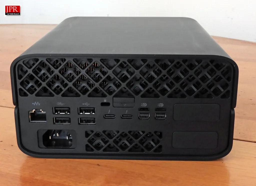 We were slightly disappointed that no HDMI ports or adapters were included. However, the Z2 Mini G1a supports up to four 4K displays simultaneously, providing strong multi-monitor flexibility despite its compact form.