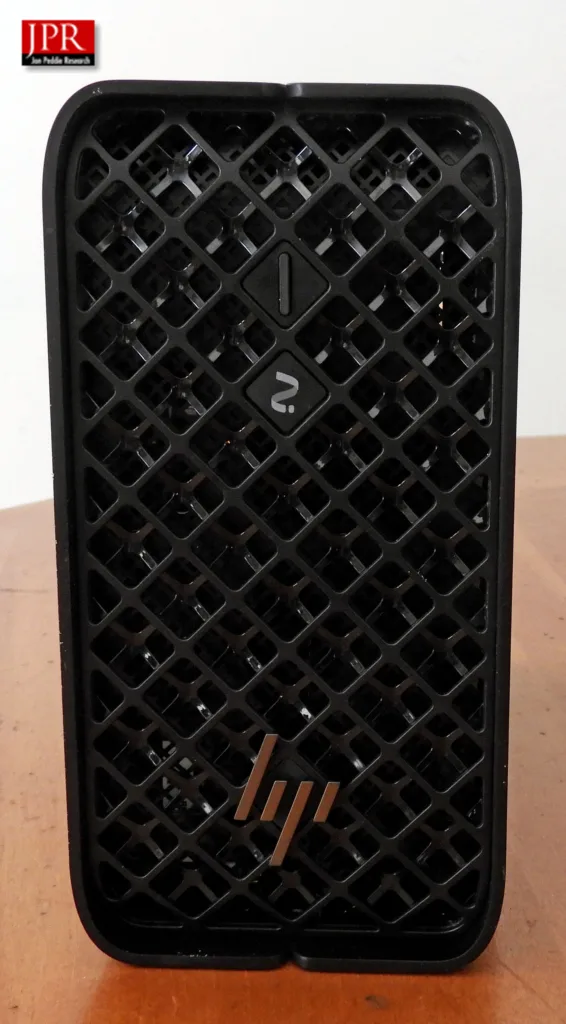 The Z2 Mini G1a features a sleek, professional design and a robust plastic case. It can be oriented vertically or horizontally, mounted under a desk, racked (up to five units per 4U), or attached to the rear of an HP display.