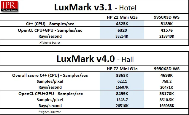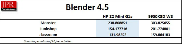 While not matching the RTX 5090-equipped desktop in raw performance, the Z2 Mini G1a performed exceptionally well, delivering smooth, stable results for most creative workloads.