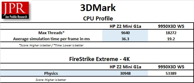 3DMark’s CPU Profile test scales from single-threaded to maximum-thread workloads to evaluate efficiency and throughput. We also compared FireStrike Extreme’s physics test at 4K to assess real-world CPU performance.